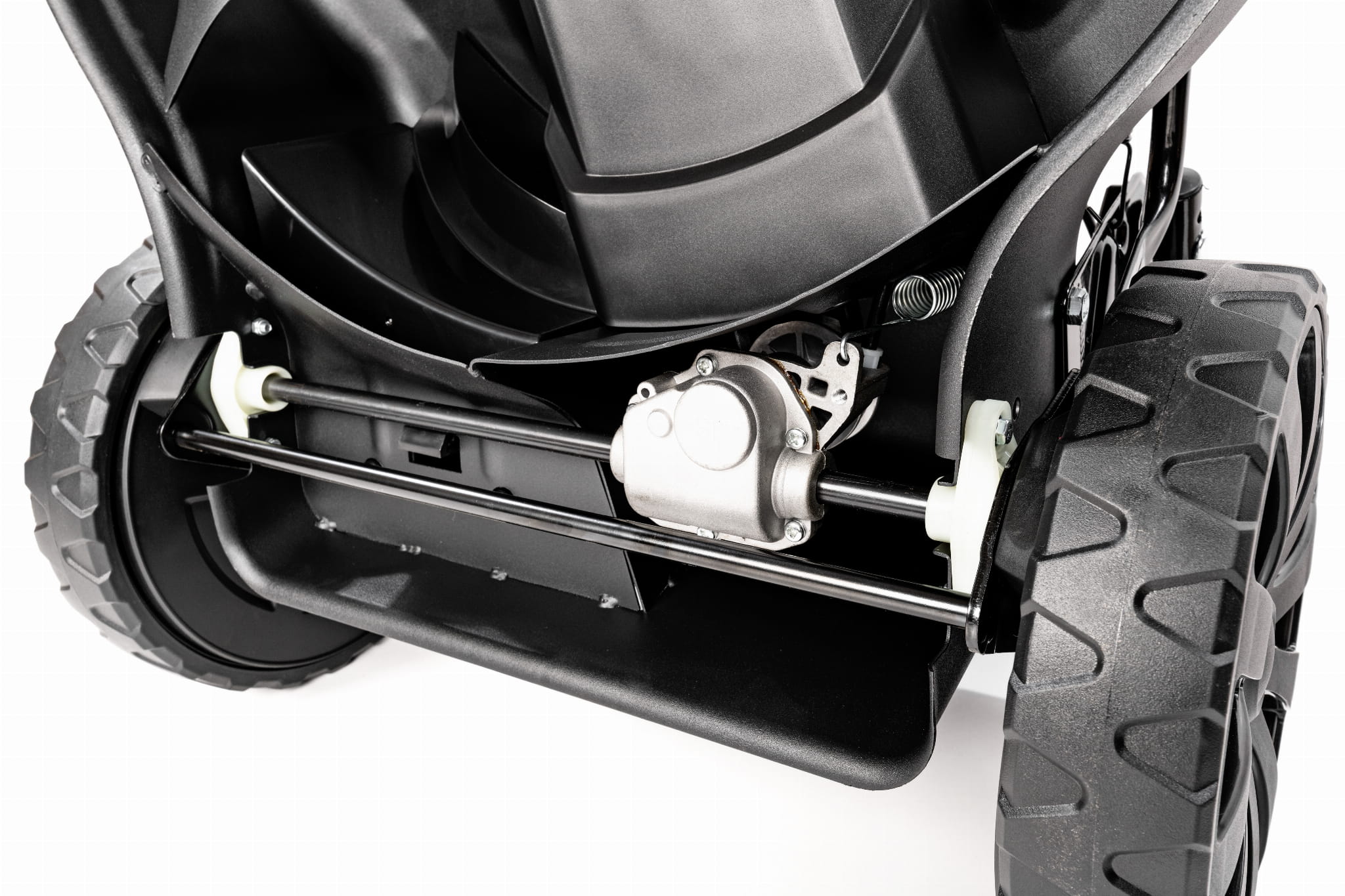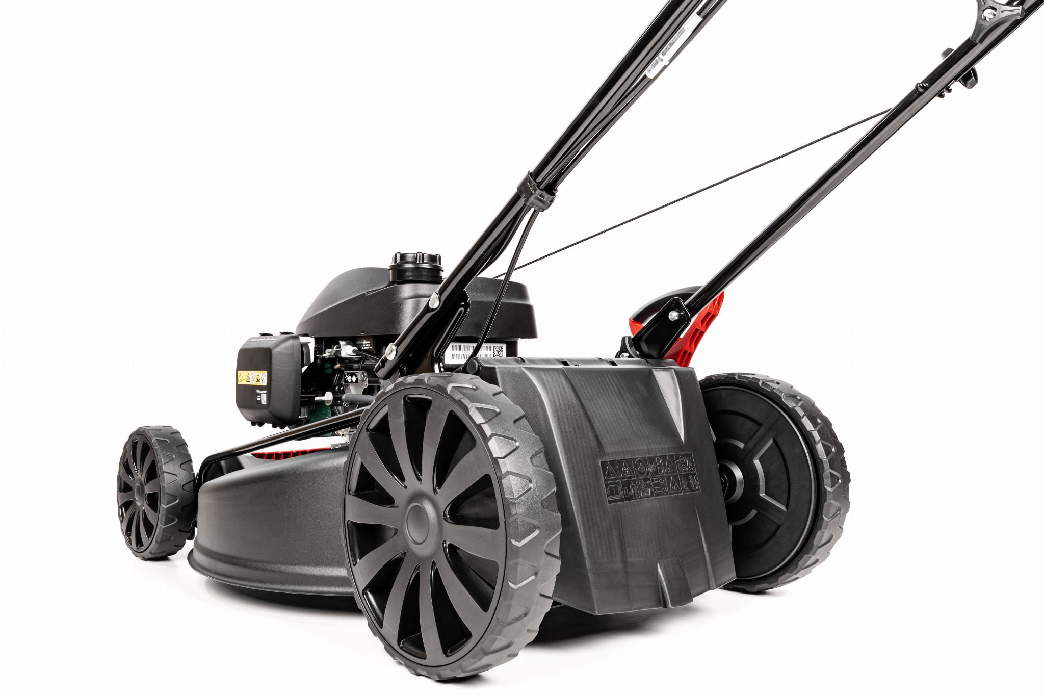 - duże, łożyskowane koła pozwalają łatwo manewrować kosiarką
