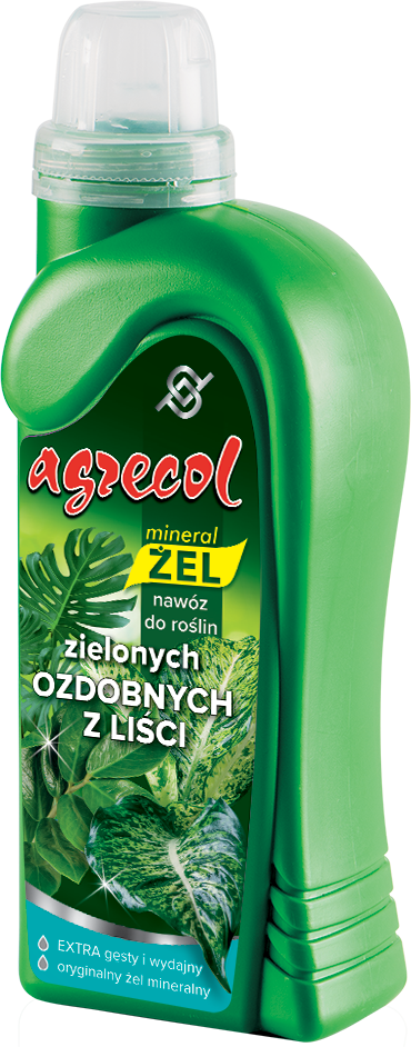 Nawóz do roślin zielonych ozdobnych z liści z serii Mineral Żel to płynny nawóz mineralny w postaci żelu, do rozpuszczania w wodzie. Przeznaczony do zasilania wszelkich gatunków roślin zielonych, ozdobnych z liści. Zalecany również do stosowania w uprawach roślin kwitnących, znajdujących się poza okresem kwitnienia. Nawóz, ze względu na bardzo łatwą rozpuszczalność w wodzie, można stosować także w uprawach hydroponicznych. Podwyższona zawartość azotu w nawozie przyczynia się do prawidłowego wytwarzaniem zielonego barwnika w liściach – chlorofilu. Dzięki czemu liście są intensywnie zielone oraz wyglądają zdrowo.