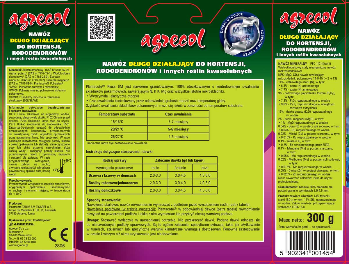 bor (B) 0,03%, miedź (Cu) 0,02%, żelazo (Fe) 0,3%, (w tym 0,15% schelatowane przez EDTA) mangan (Mn) 0,08%, molibden (Mo) 0,01%, cynk (Zn) 0,04%